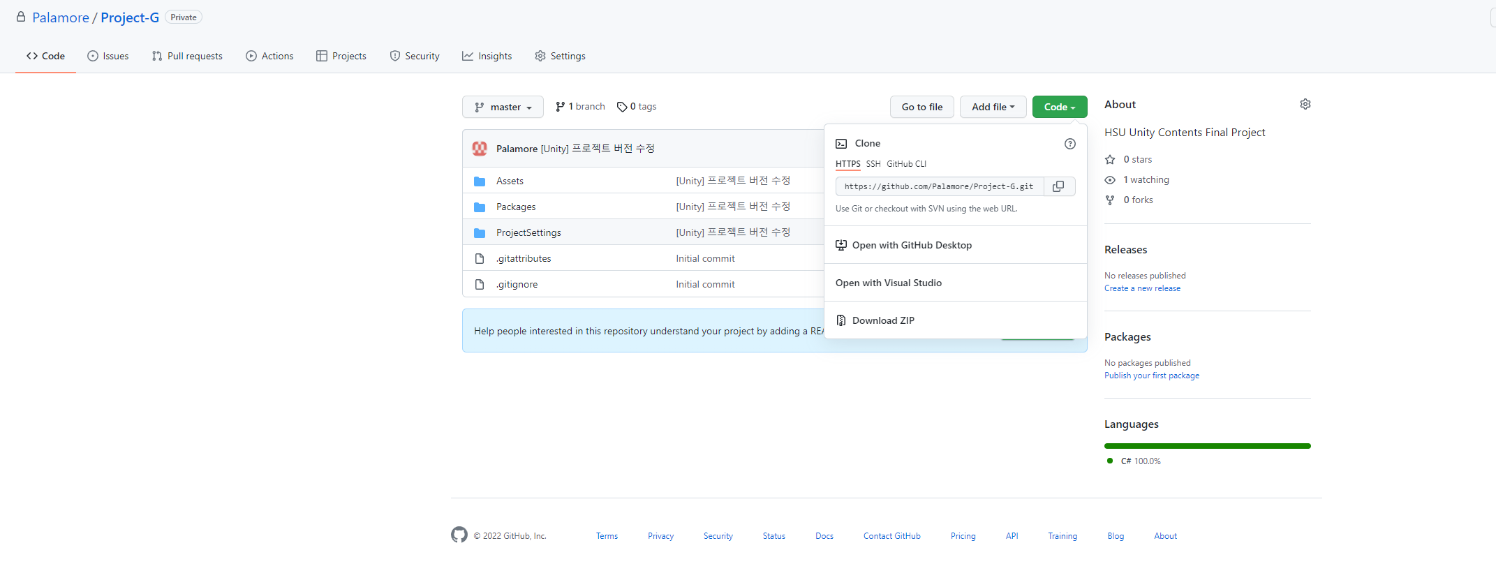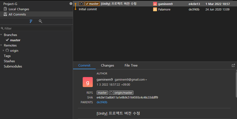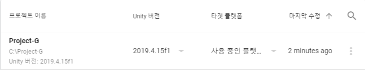 프로젝트 탭에서 '추가' 버튼으로 C드라이브에 생성된 Project-G를 클릭.