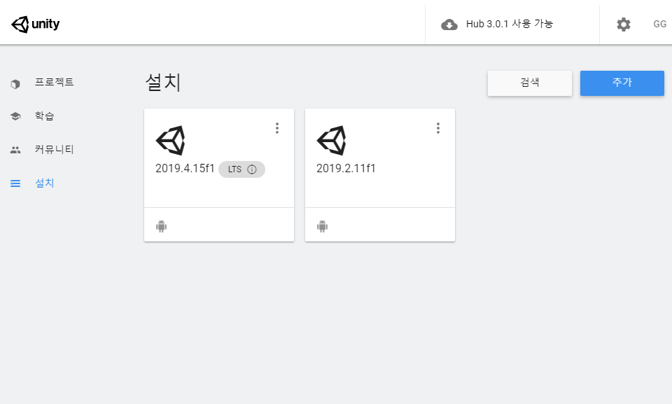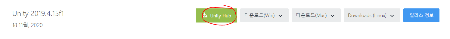 Unity Hub에 2019.4.15f1이 설치되었으면 완료.